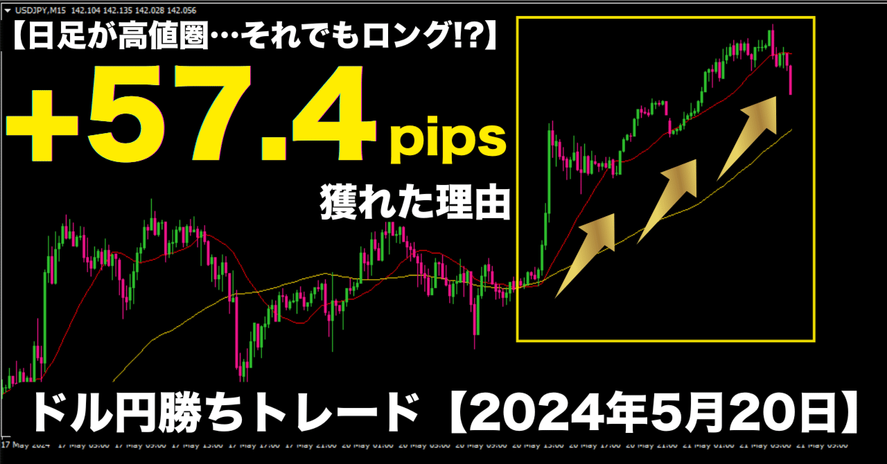 【日足が高値圏…それでもロング!?】押し目買いで +57.4pips を取れた理由【2024年5月20日】|たろう@トレー…