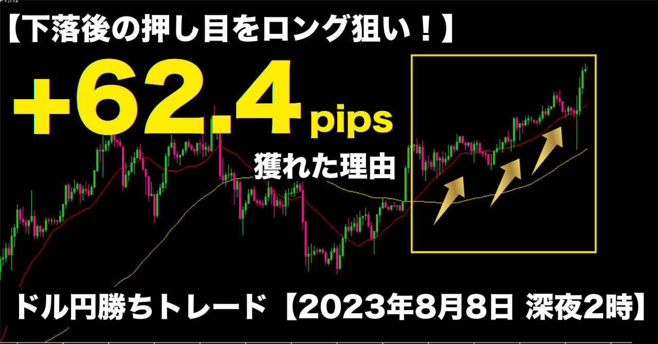 【下落後の押し目をロング狙い!】ドル円で +62.4pips 獲得【2023年8月8日 深夜2時】|たろう@トレード