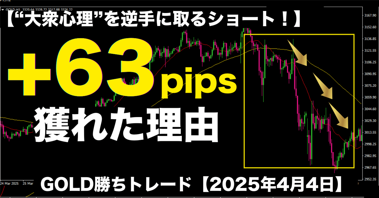 【“大衆心理”を逆手に取る!】ゴールドをショートで +63pips 獲得【2025年4月4日】|たろう@トレード