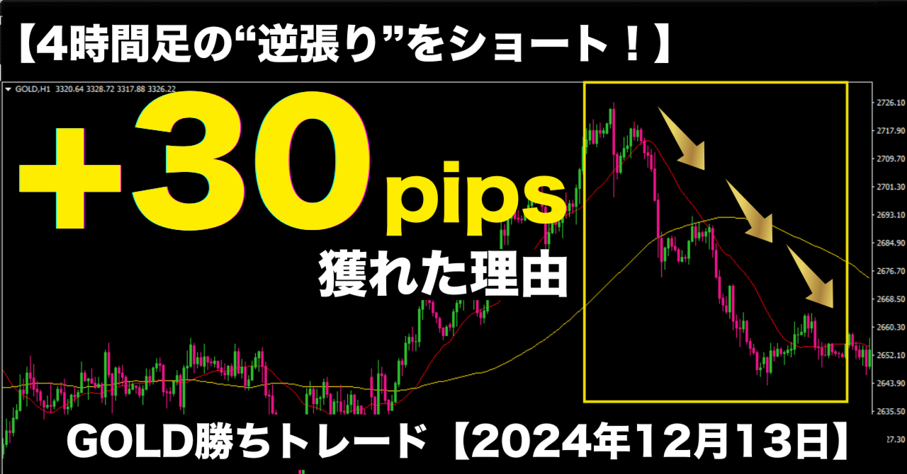 【4時間足の“逆張り”を狙う!】ゴールドで +30pips 獲得【2024年12月13日】|たろう@トレード